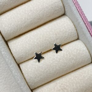 Brinco De Prata Estrela Zirconia Preta Centro Cod:B3/29