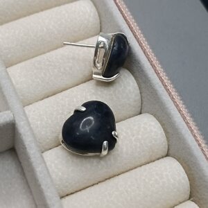 Brinco De Prata Pedra Natural Coração Escuro Cod:B3/43