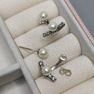 Brinco De Prata Grace Kelly Com Perola E Zirconia Envelhecida Cod:B4/50