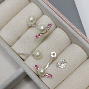 Brinco De Prata Grace Kelly Com Perola E Zirconia Vermelha Cod:B4/49