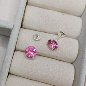 Brinco De Prata Zirconia Rosa 6mm Taraxa Baby Cod:B3/45