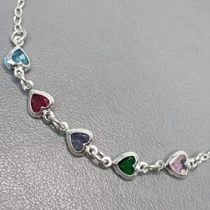 Pulseira De Prata 4 Zircônias Corações Color Fio – V.R.L.A