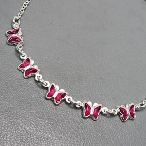 Pulseira De Prata 5 Zirconia Borboleta Vermelho Meio