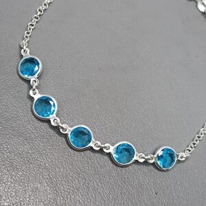 Pulseira De Prata 5 Zirconia Azul Meio 6,5mm