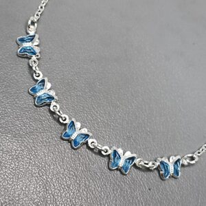 Pulseira De Prata 5 Zirconia Borboleta Azul Meio