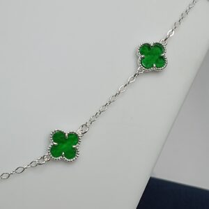 Pulseira De Prata 3 Trevo Verde Lapidado Pequeno