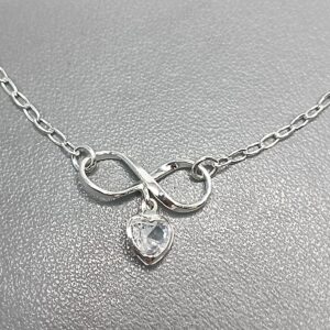 Pulseira De Prata Zirconia Coração Pendente No Infinito Meio