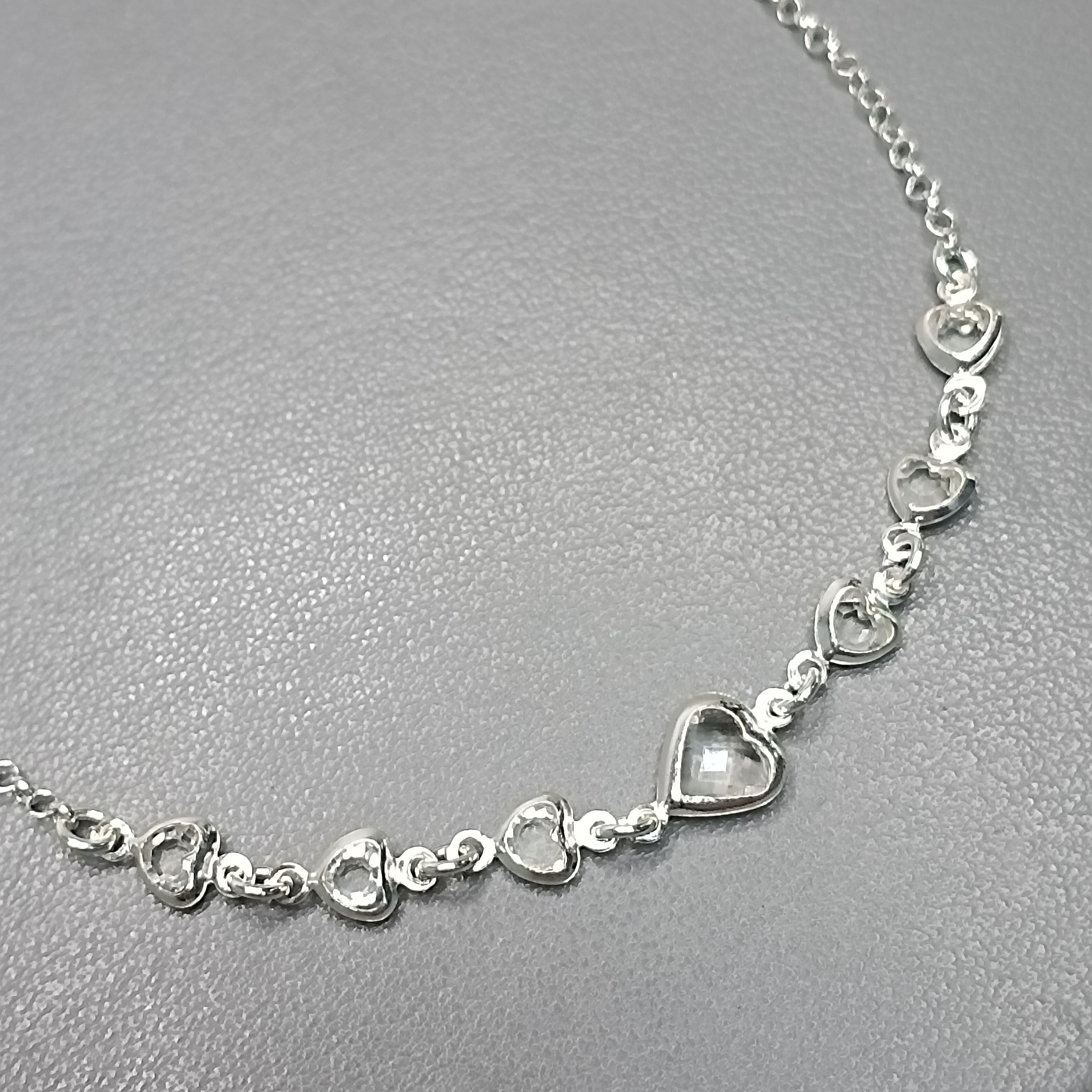 Pulseira De Prata 7 Zirconias Coração Pendente Fio Cod:PU-53