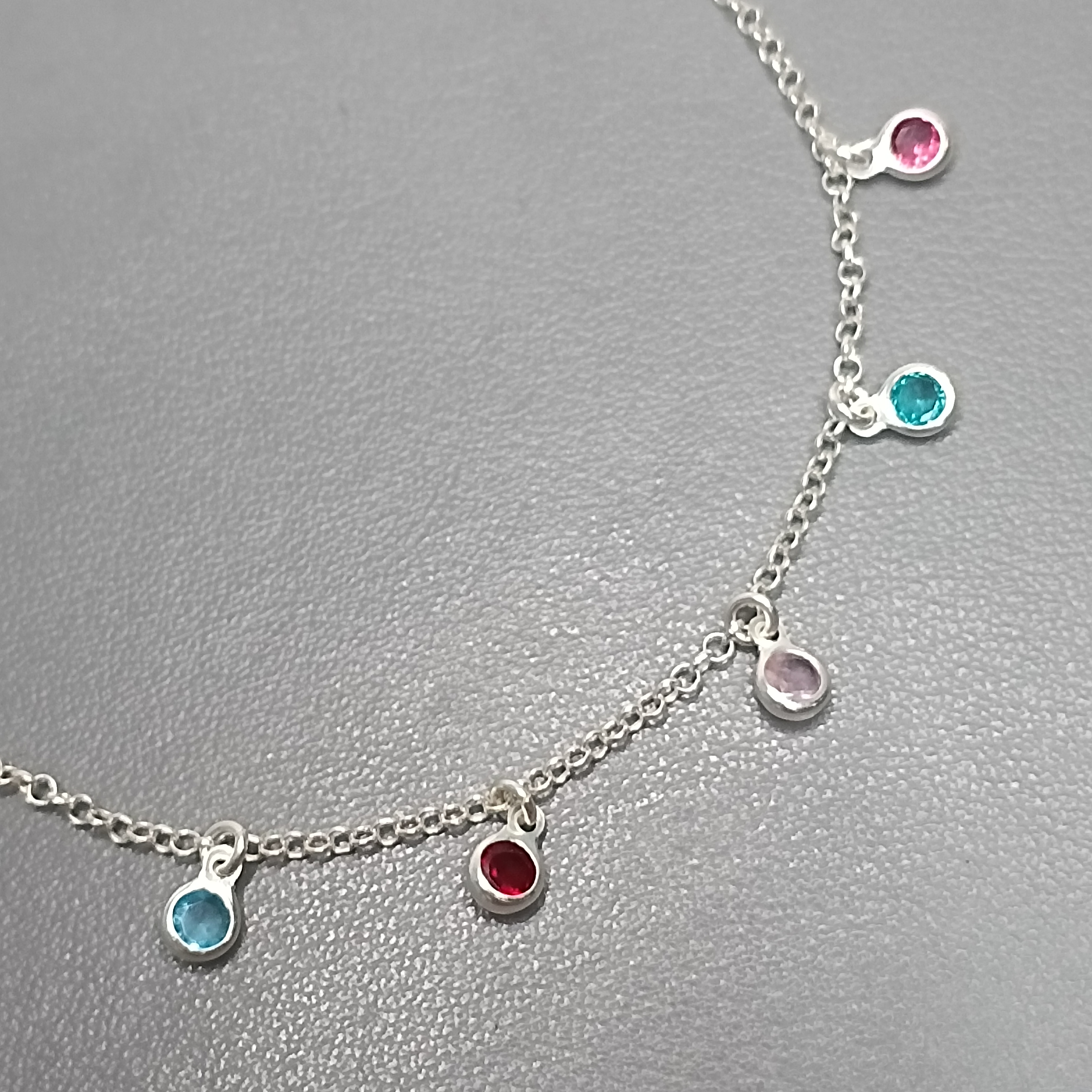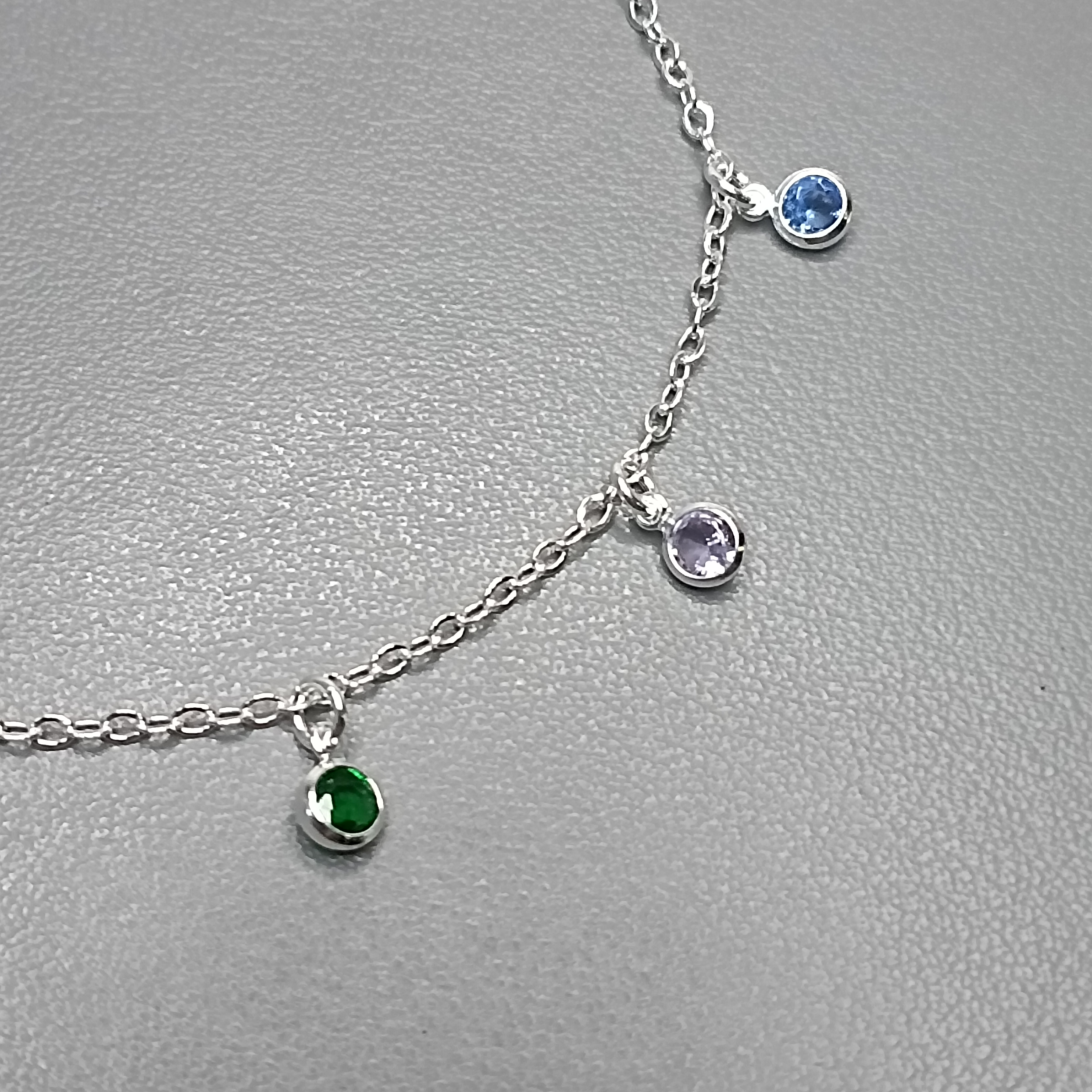 Pulseira De Prata 7 Zirconia Gota Color Pequena Pendente Fio VABRV Cod:PU-38
