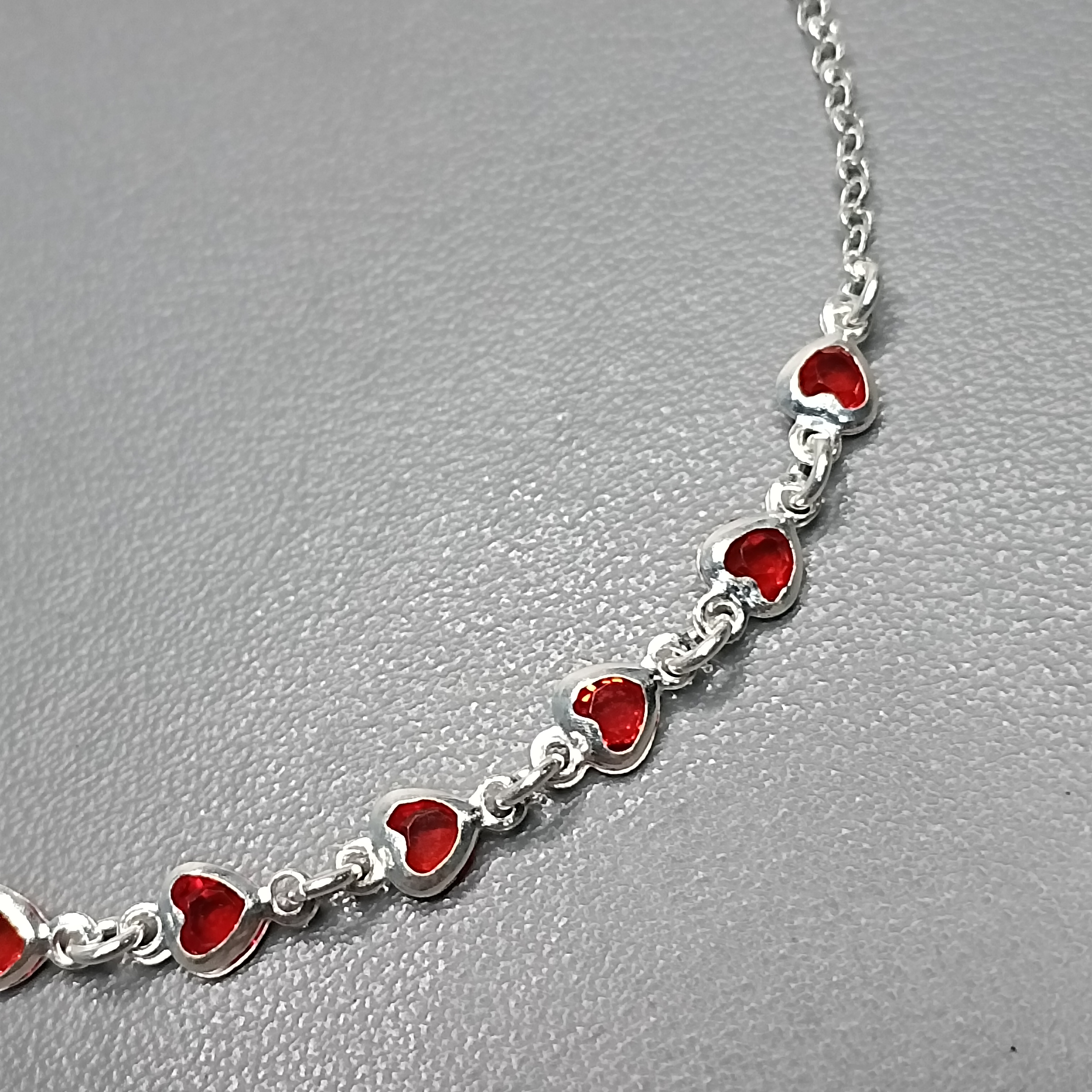 Pulseira De Prata 7 Zirconia Coração Vermelho Fio Cod:MD
