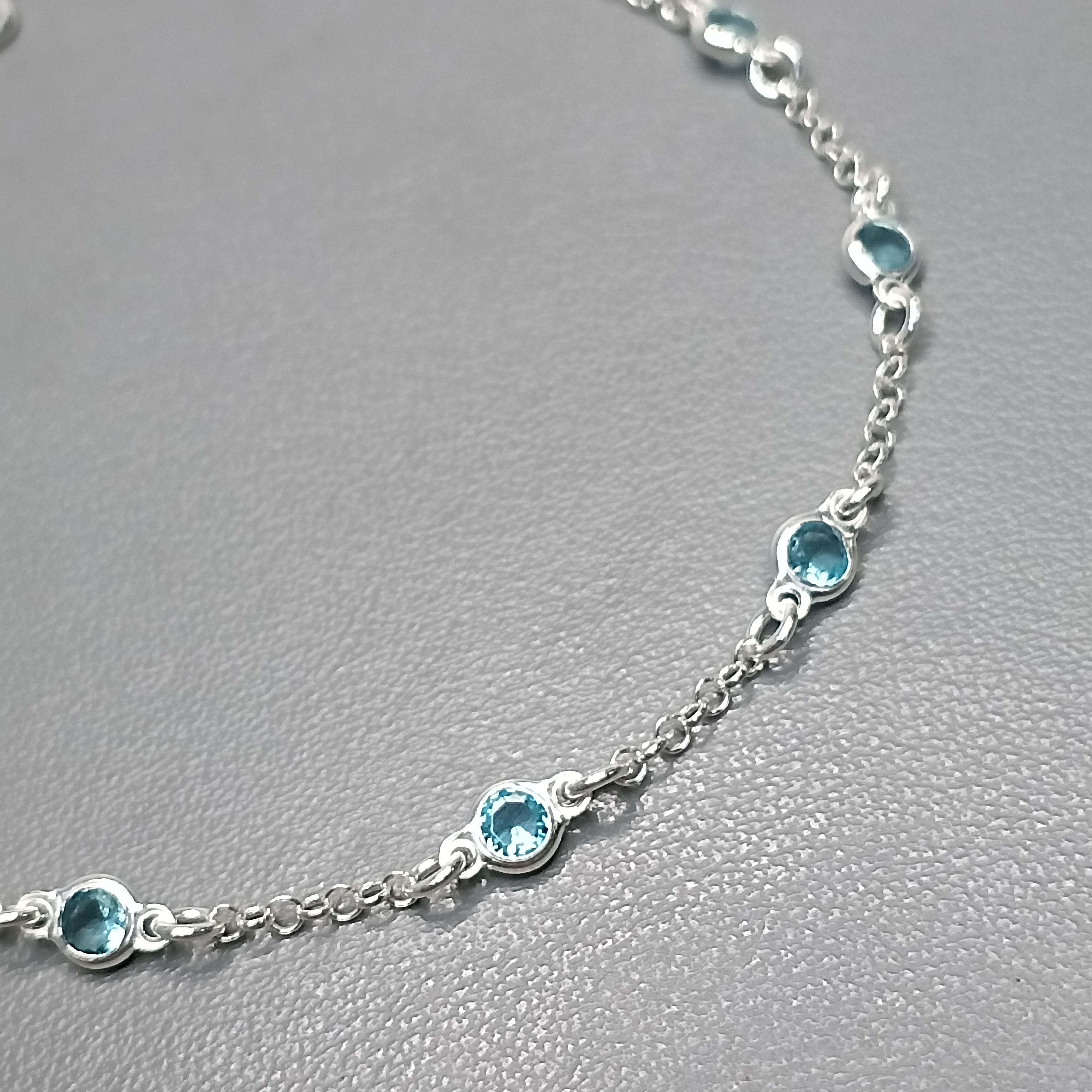 Pulseira De Prata 8 Zirconia Azul Claro Fio Cod:MD1