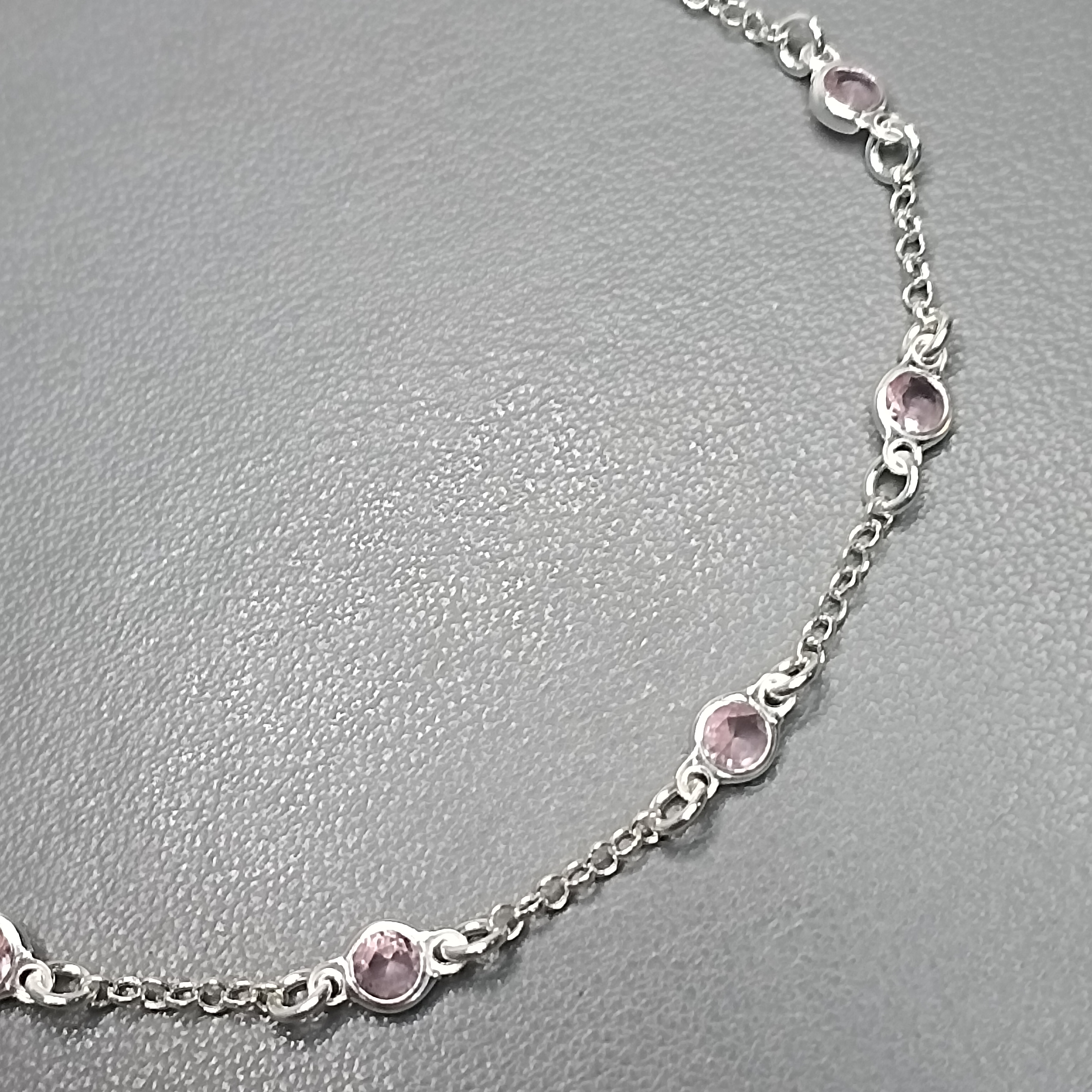 Pulseira De Prata 8 Zirconia Rosa Clara Pequena Fio Cod:MD1