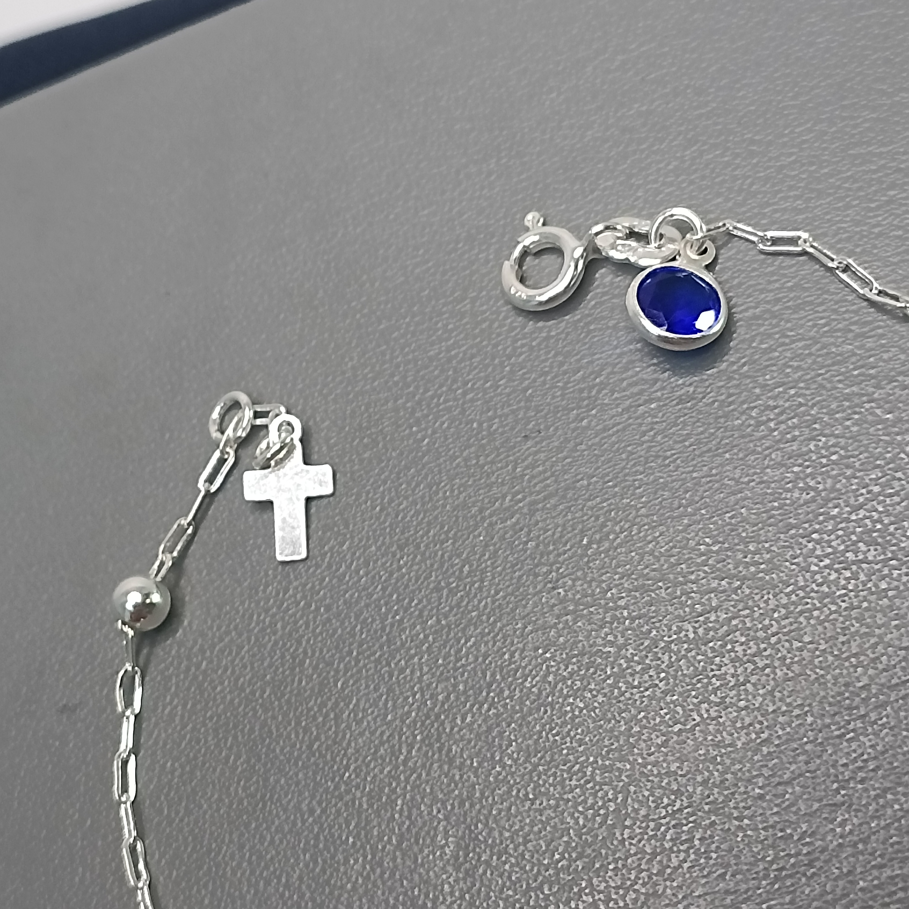Pulseira De Prata Zirconia Olho Azul Escuro Meio 2 Bolas Fio Cod:PU-08