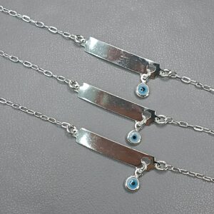 Pulseira De Prata Infantil Chapinha com Olho Grego Pendente Cod:PUI-01