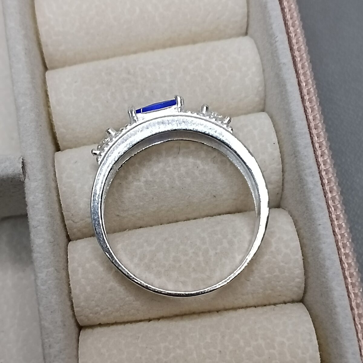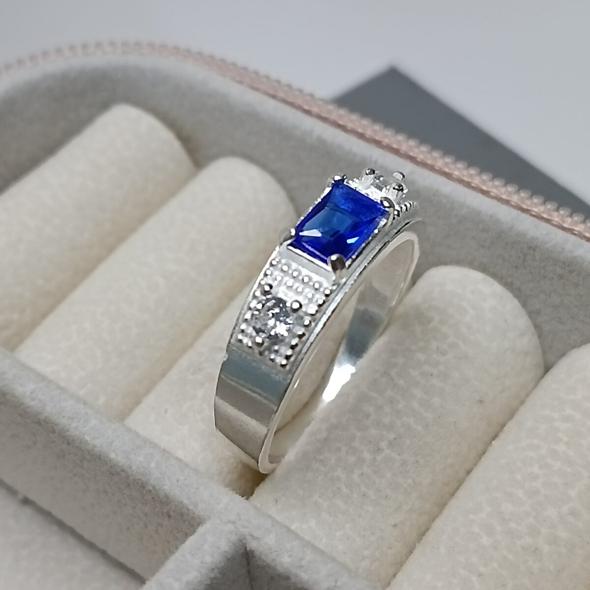 Anel De Prata Masculino 3 Zirconias Baguete Azul K450/55