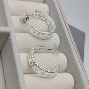 Brinco De Prata Meia Argola Media Corações Vazado Laterais Cravejadas Cod:MAR16