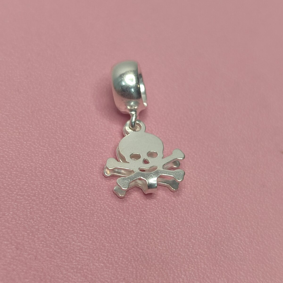 Berloque De Prata Caveira Com 2 Ossos Cruzados
