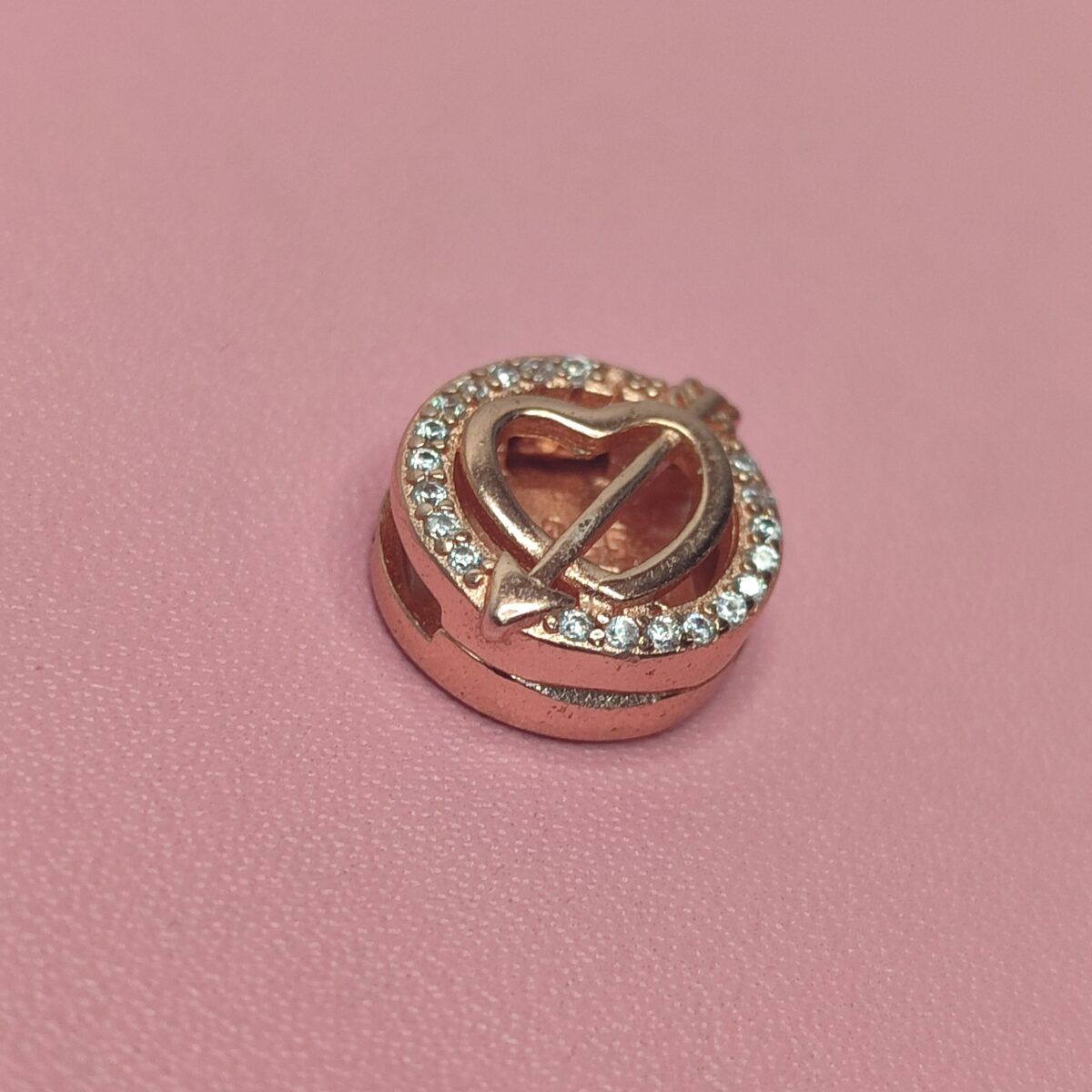 Berloque De Prata Com Banho Rose Para Pulseira Esteira Coração vazado Borda Cravejada
