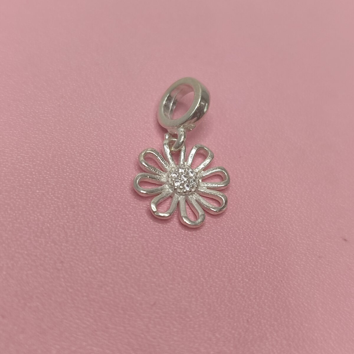 Berloque De Prata Flor Vazada Miolo Com Zirconia