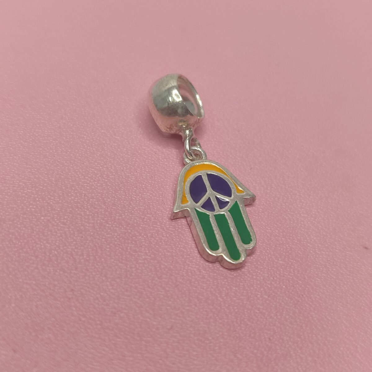 Berloque De Prata Hamassa Com Simbolo Da Paz Verde , Azul , Amarelo