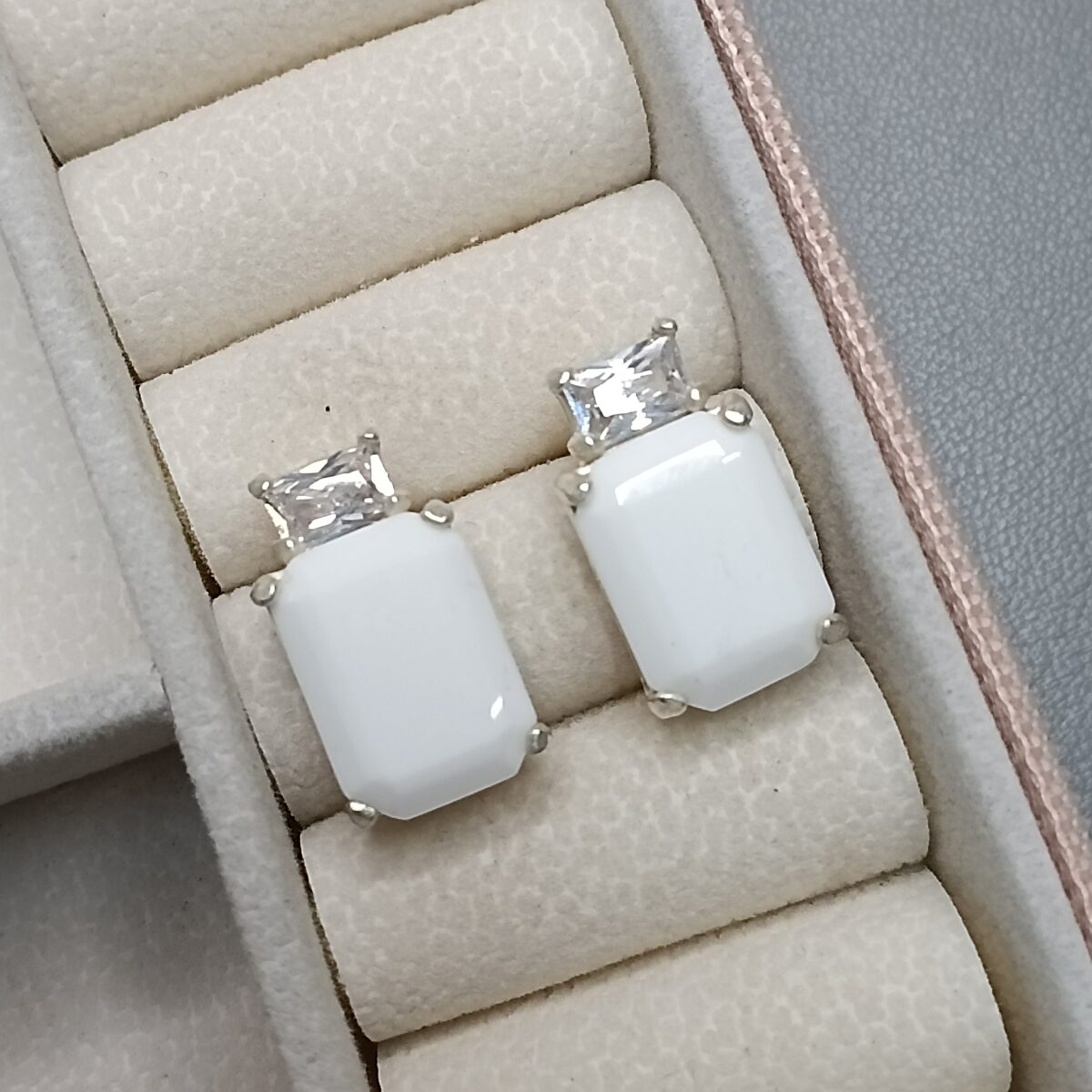 Brinco De Prata 2 Zirconias Baguetes Branca Caixa Alta K269/44