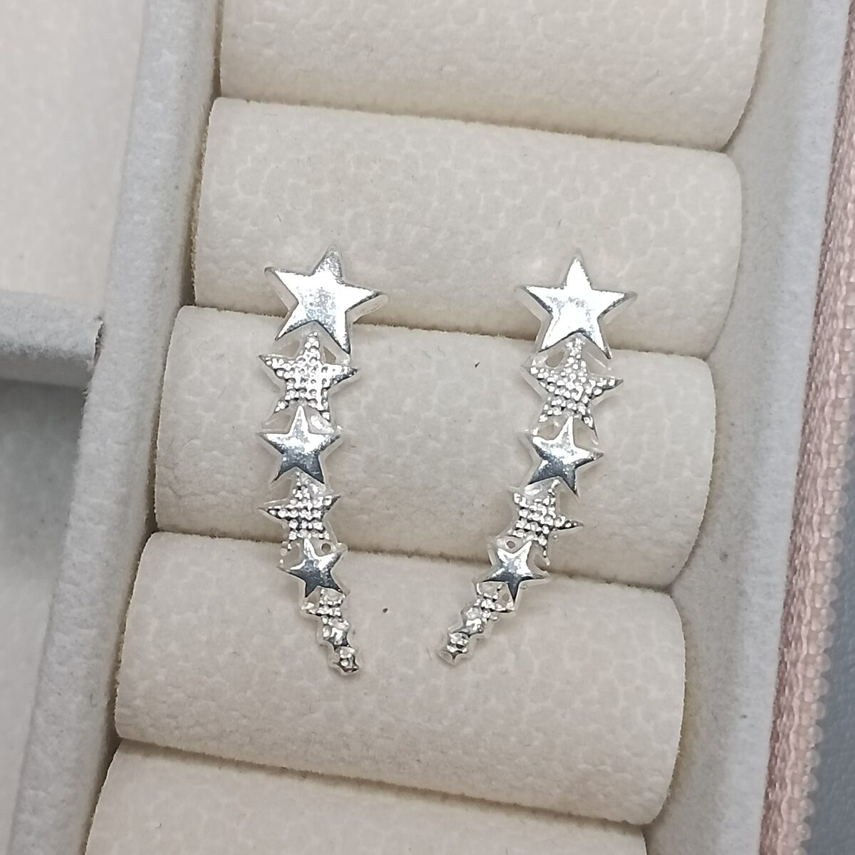 Brinco De Prata Aer Cuff Estrela Lisa E Trabalhada Crescentes Cod:B2/5