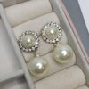 Brinco De Prata Base Envelhecida Pérola Zirconia Ao Redor Pérola Pendente kK249/44