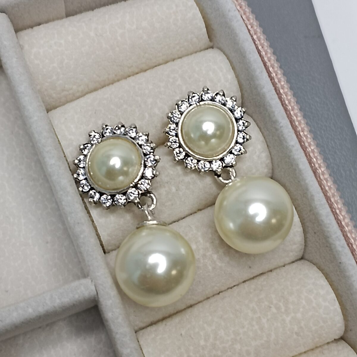 Brinco De Prata Base Envelhecida Pérola Zirconia Ao Redor Pérola Pendente Cod:B4/40
