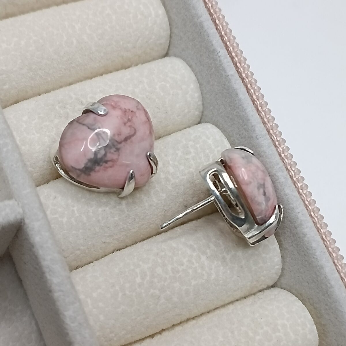 Brinco De Prata Coração Pedra Natural Rosa K328/60