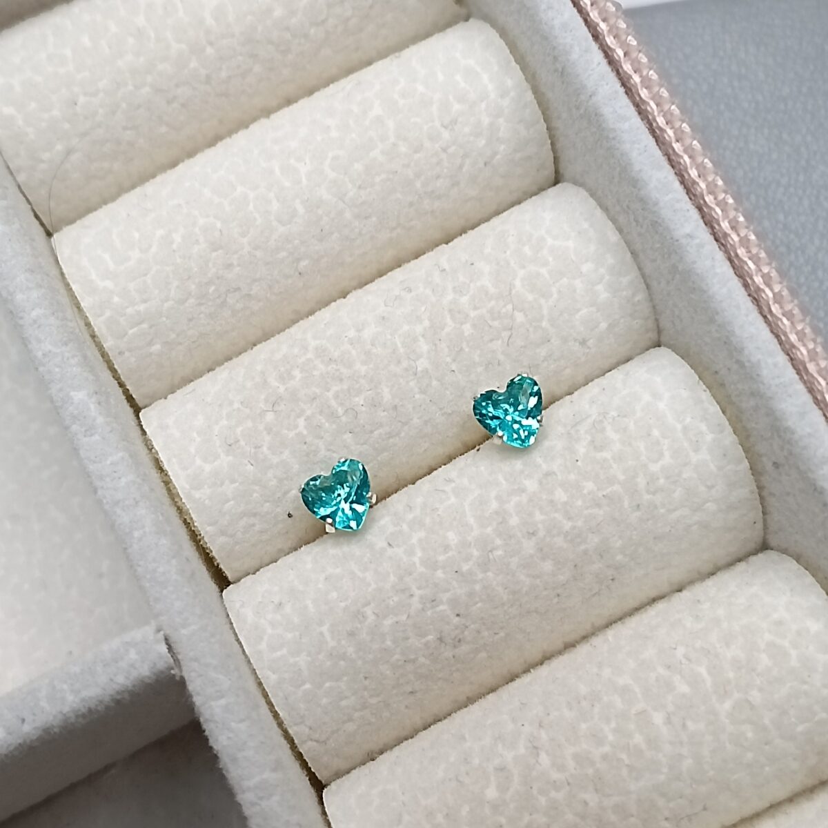 Brinco De Prata Coração Zirconia Verde Água 4mm K50/54