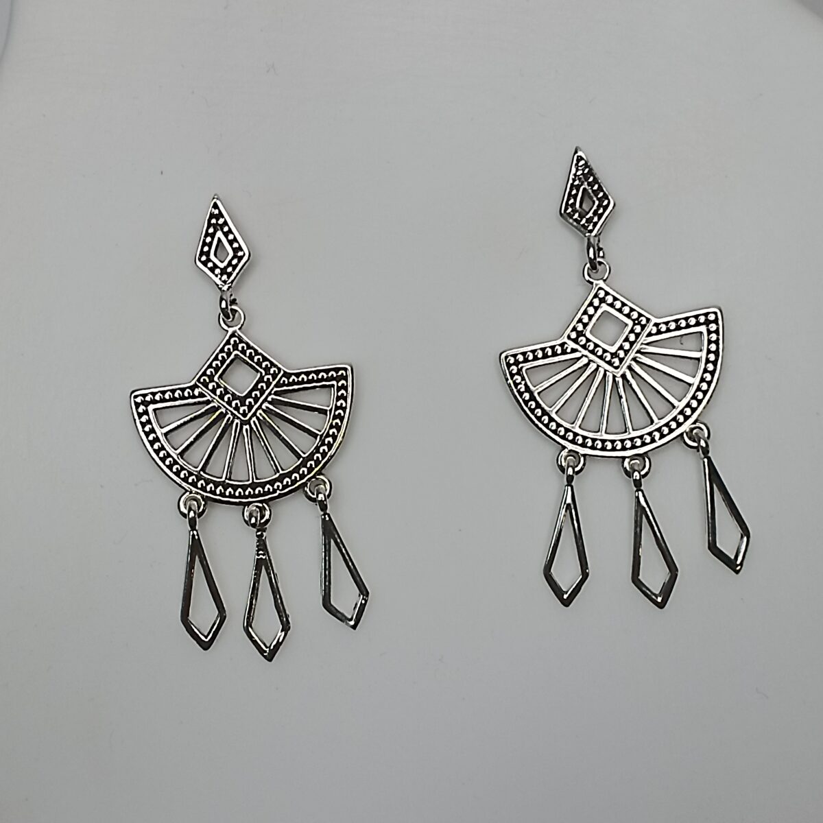 Brinco De Prata Envelhecido Leque Vazado Com Pendente Vazado K307/51