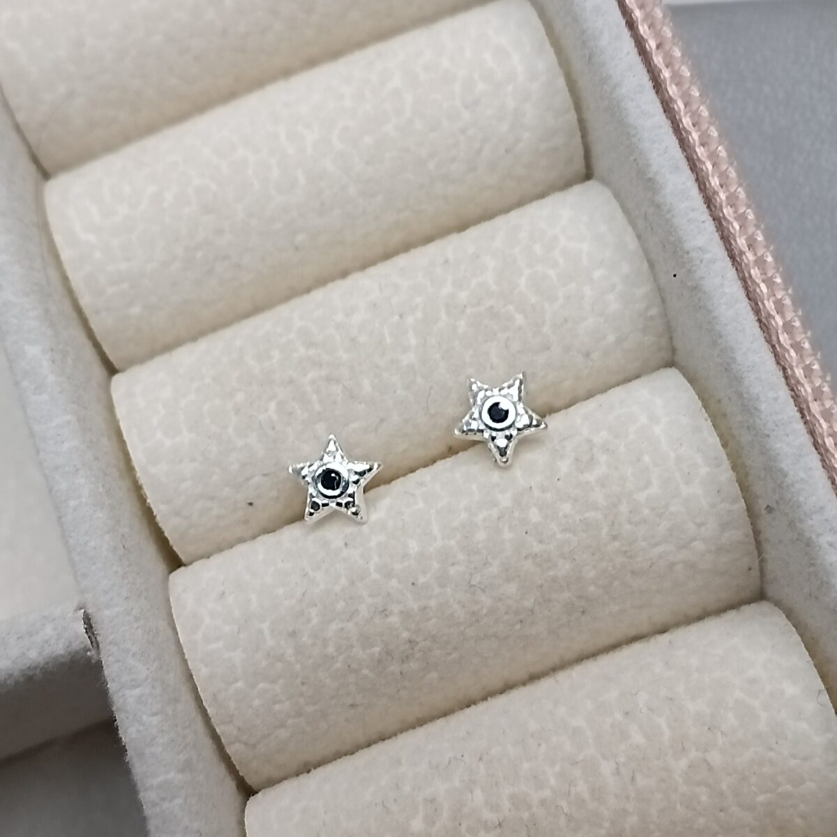 Brinco De Prata Estrela Zirconia Preta Centro Cod:B3/29