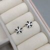 Brinco De Prata Flor Resina Preta K86/44