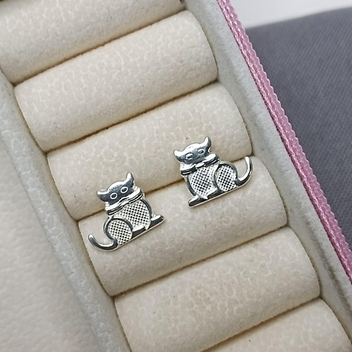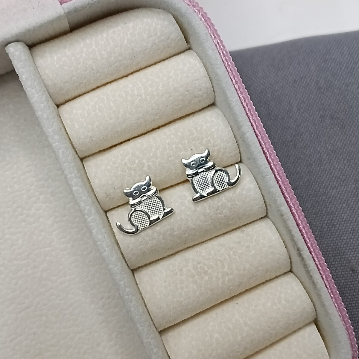 Brinco De Prata Gato Relevo Cod:B1/49 K103/54
