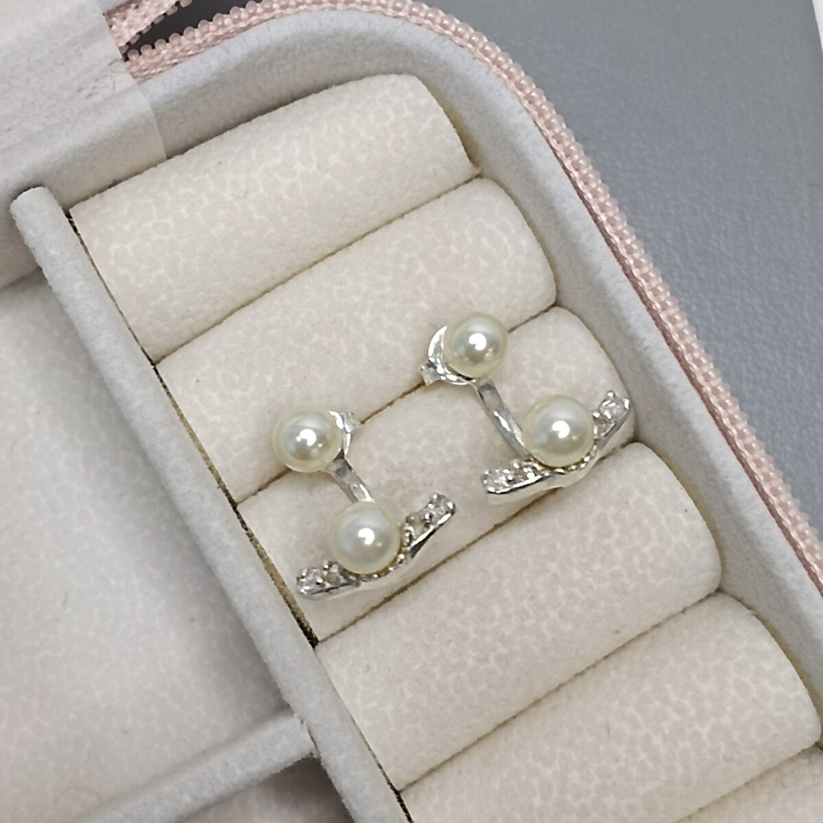 Brinco De Prata Grace Kelly Com Perola E Zirconia Cod:B4/51