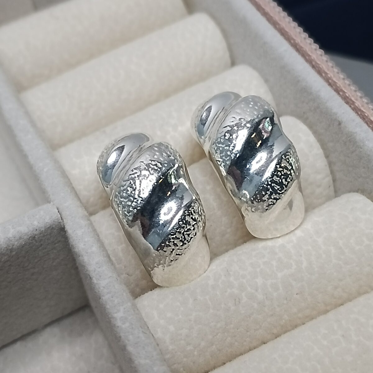 Brinco De Prata Meia Argola Larga Trabalhada K237/54