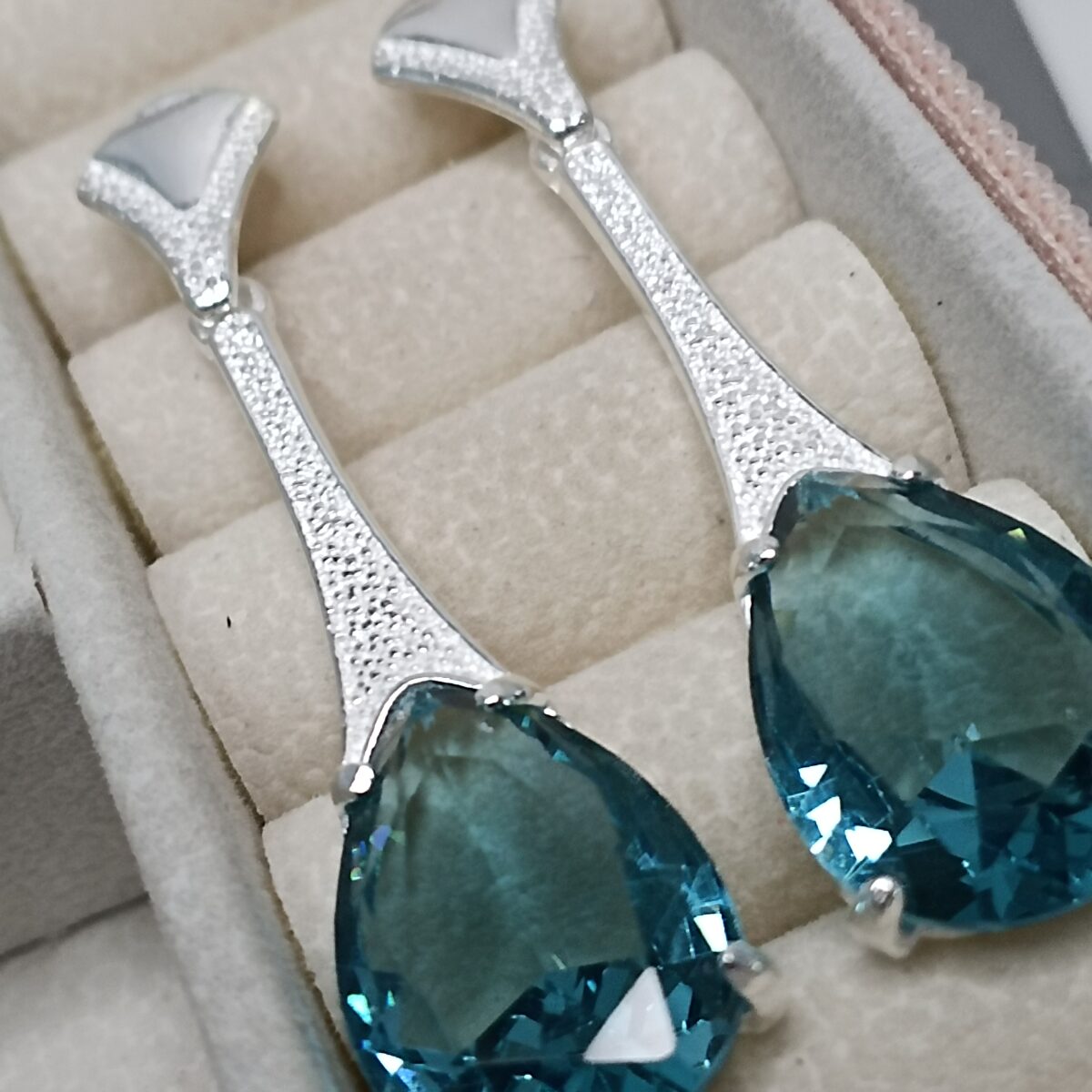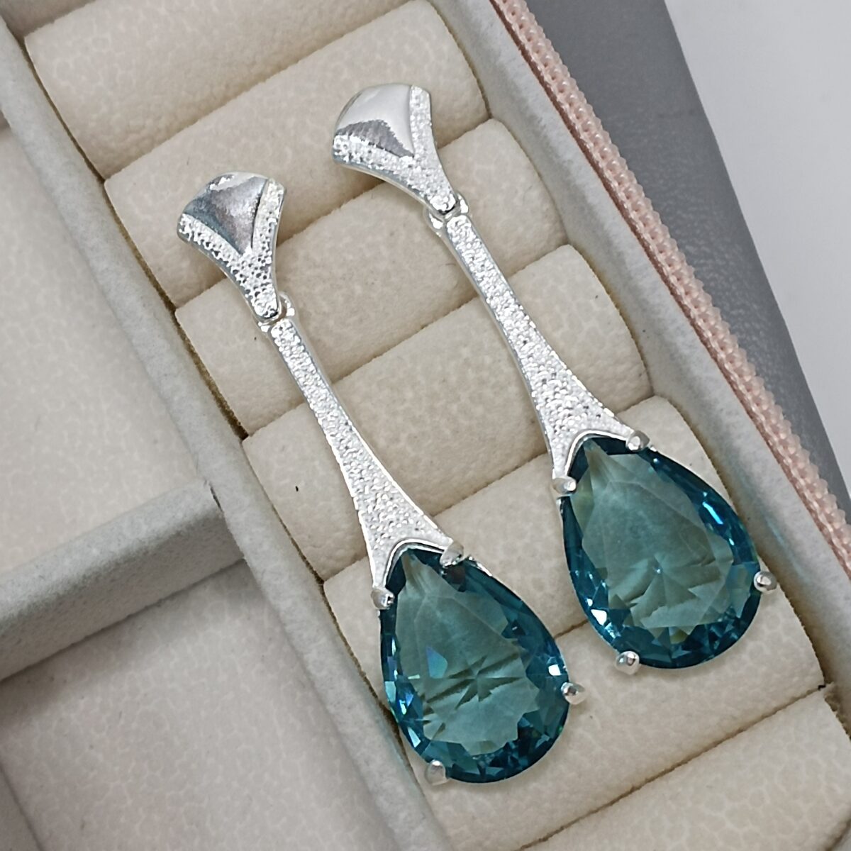 Brinco De Prata Pendente Gota Azul Cod:B5/1