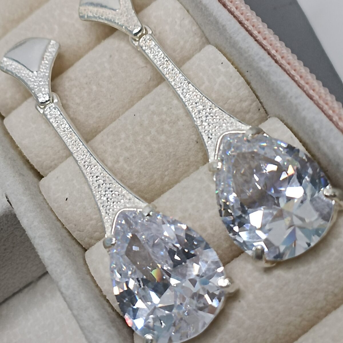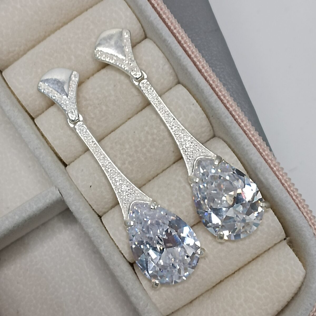 Brinco De Prata Pendente Gota Branca K680/56