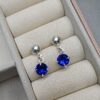 Brinco De Prata Pendente Zirconia Redonda Azul 6mm K68/54