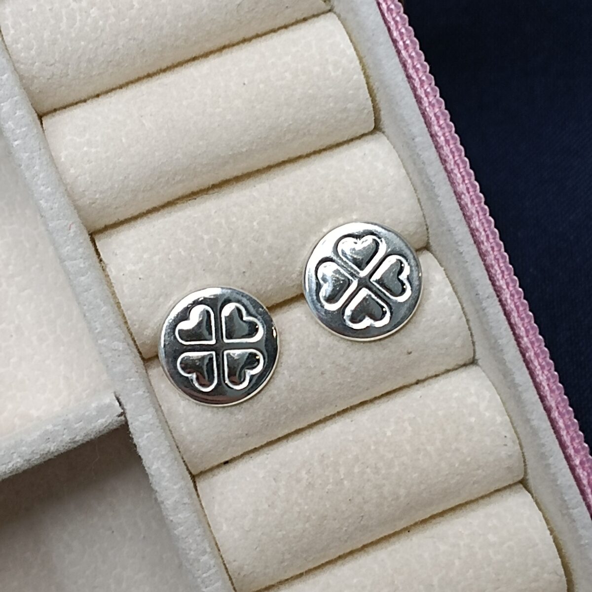 Brinco De Prata Placa Redonda 4 Corações B1/3 K97/54