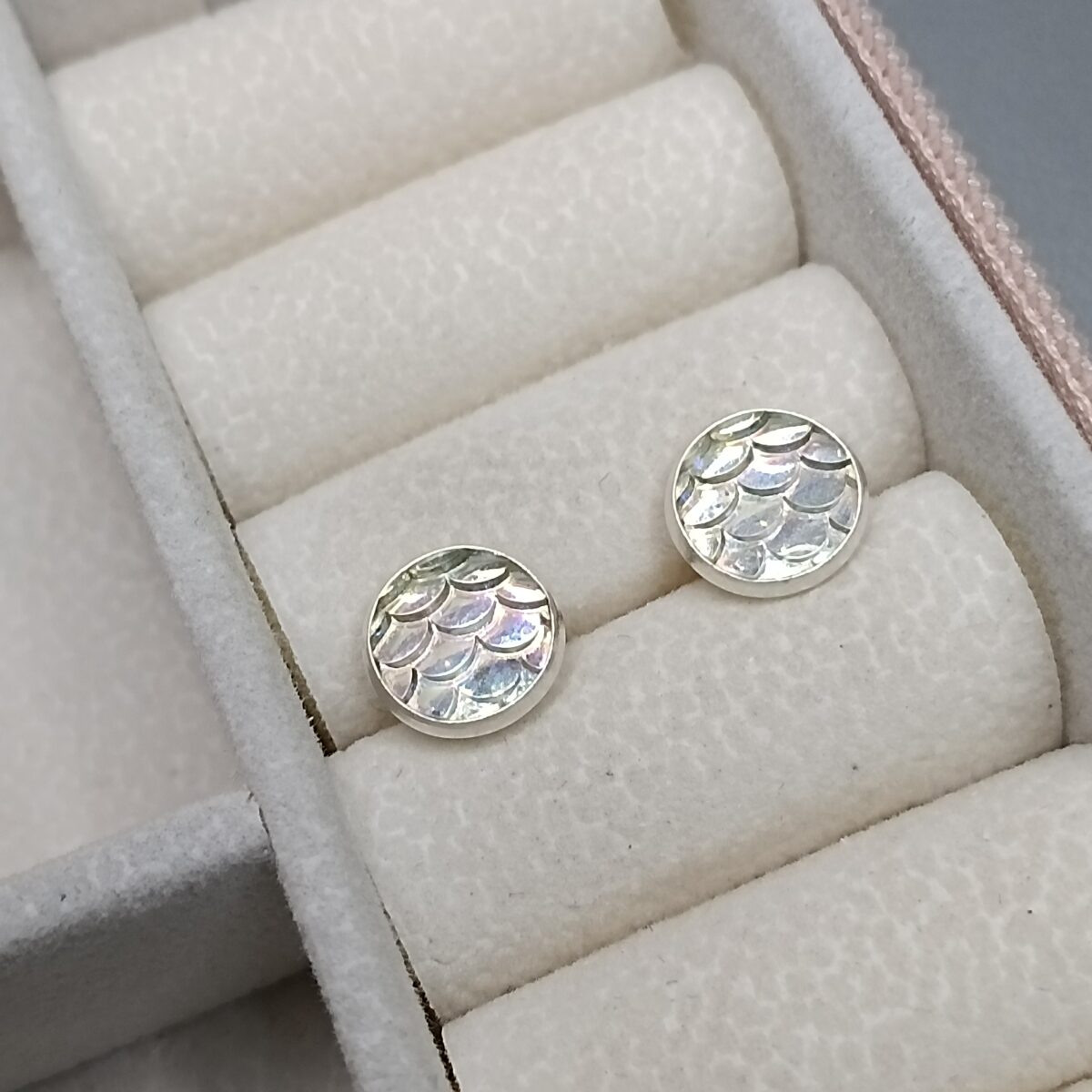 Brinco De Prata Redondo Escama Sereia Fruta Cor K87/54