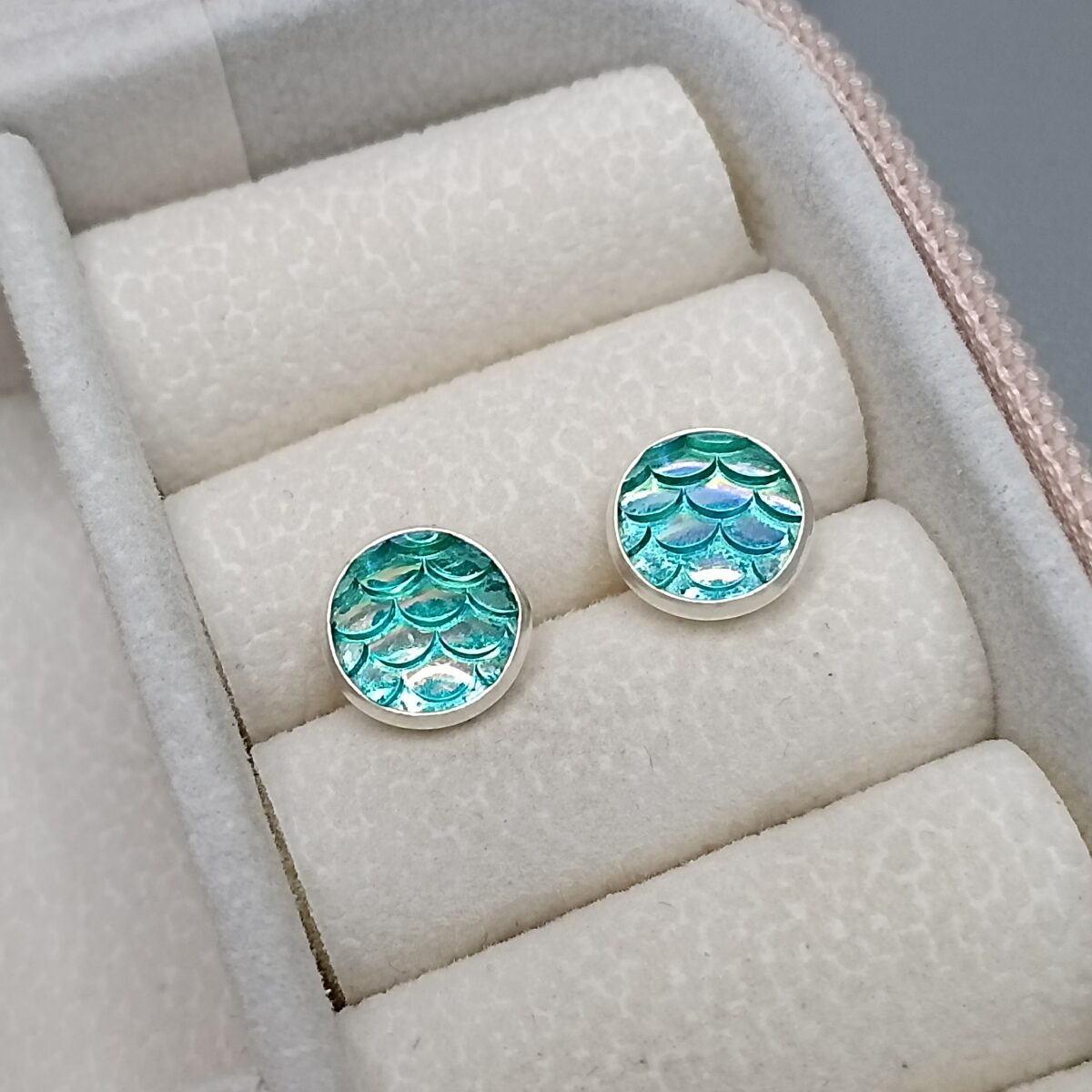 Brinco De Prata Redondo Escama Sereia Verde Cod:B3/57B