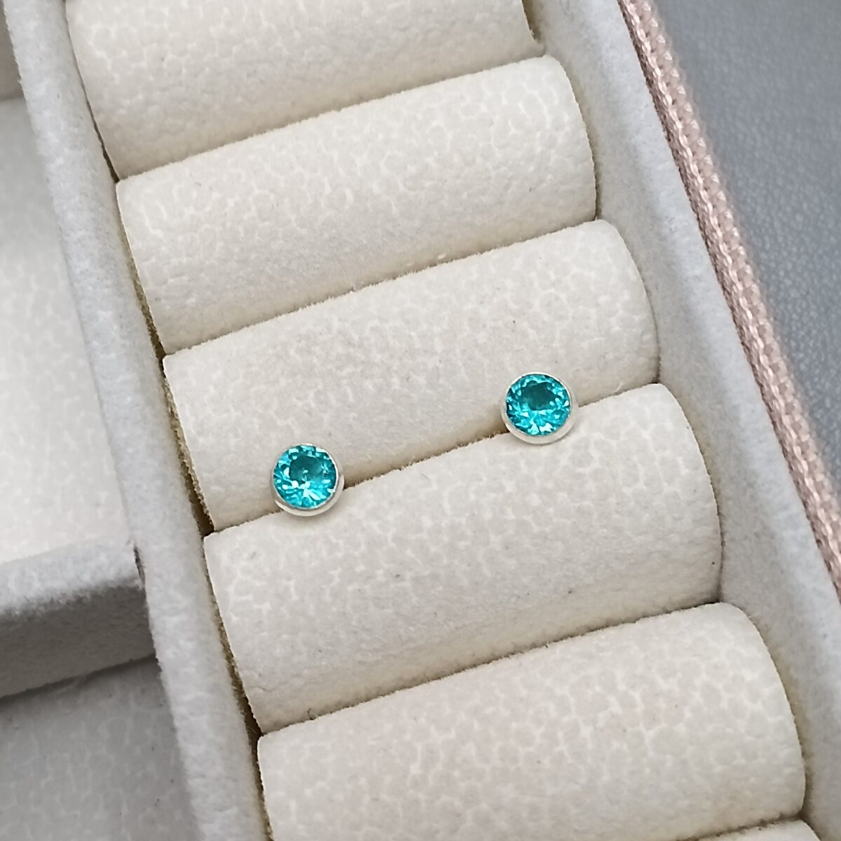 Brinco De Prata Zirconia Caflon Verde Agua 4,5mm Cod:B3/37
