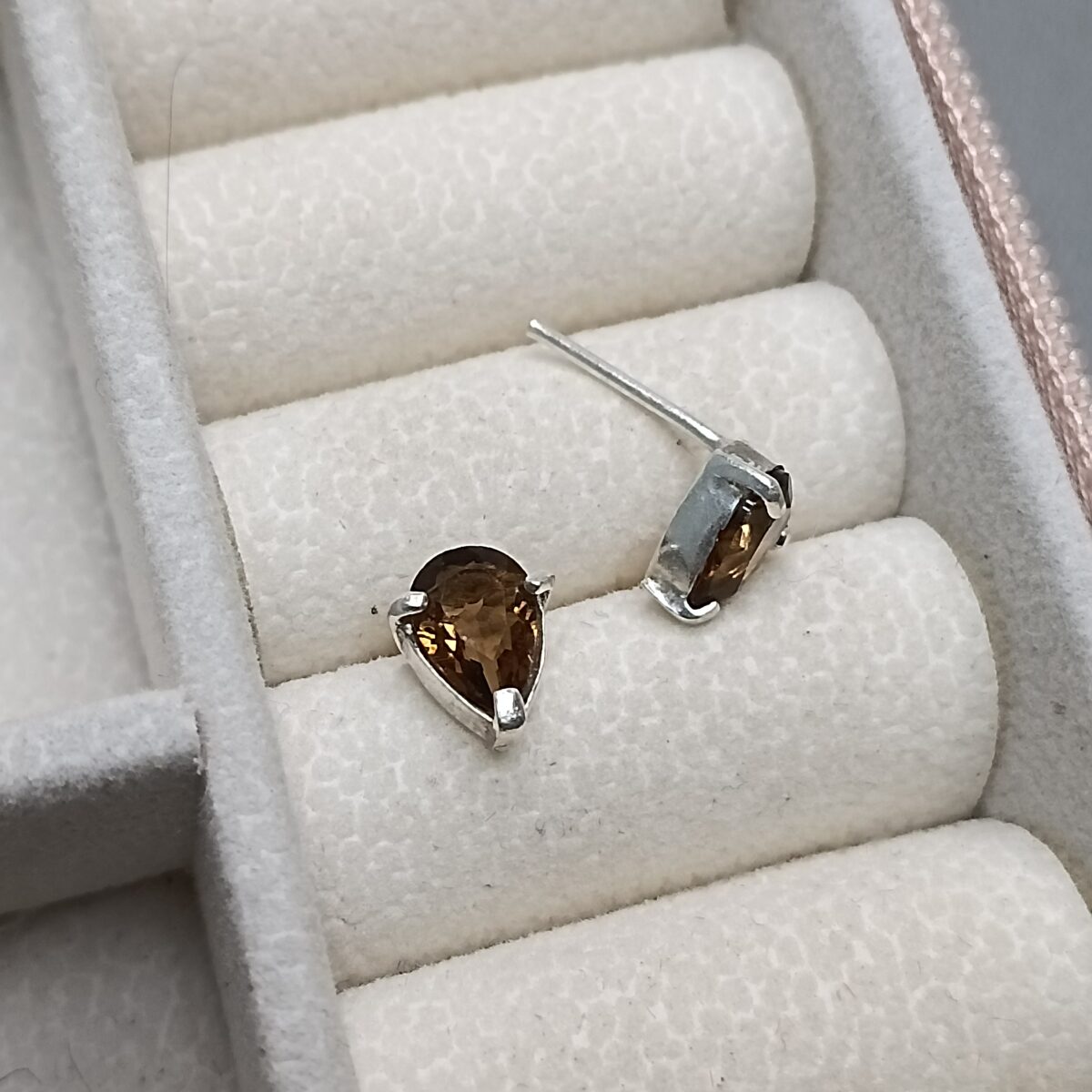 Brinco De Prata Zirconia Cx Fechada 7mm Gota Fume K109/44