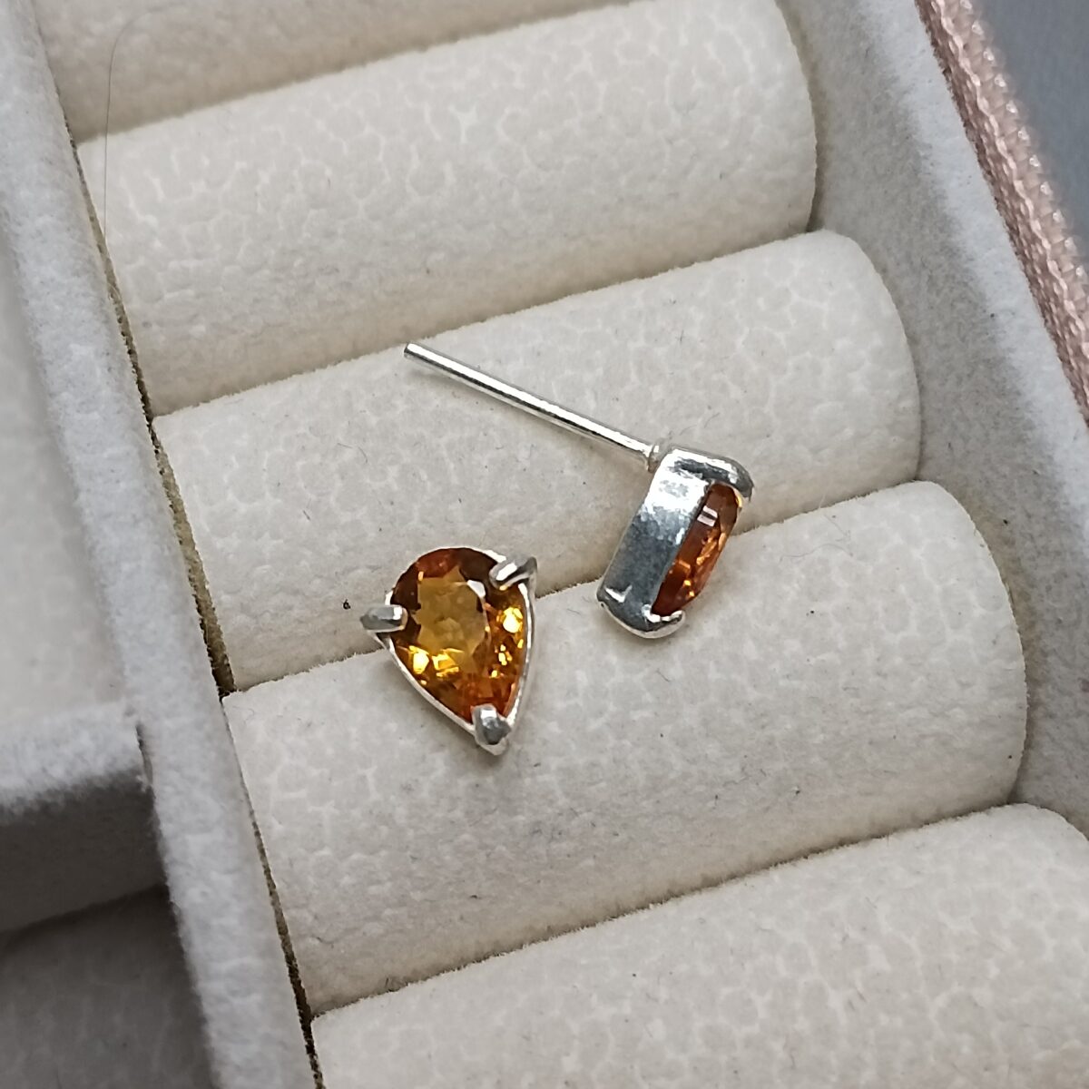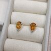 Brinco De Prata Zirconia Cx Fechada 7mm Gota Laranja Cod:B3/14