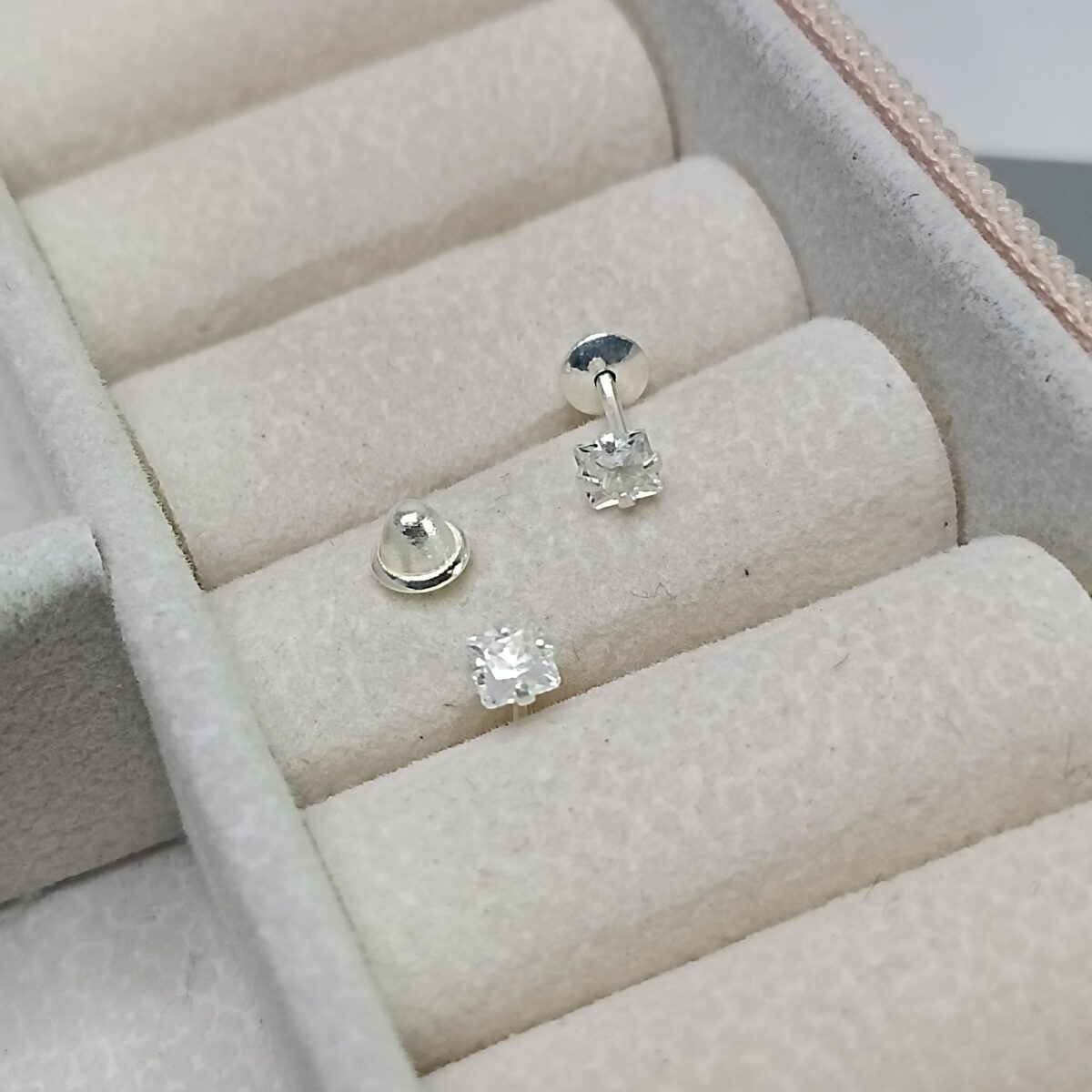 Brinco De Prata Zirconia Quadrada 3x3mm Taraxa Baby Cod:B3/47