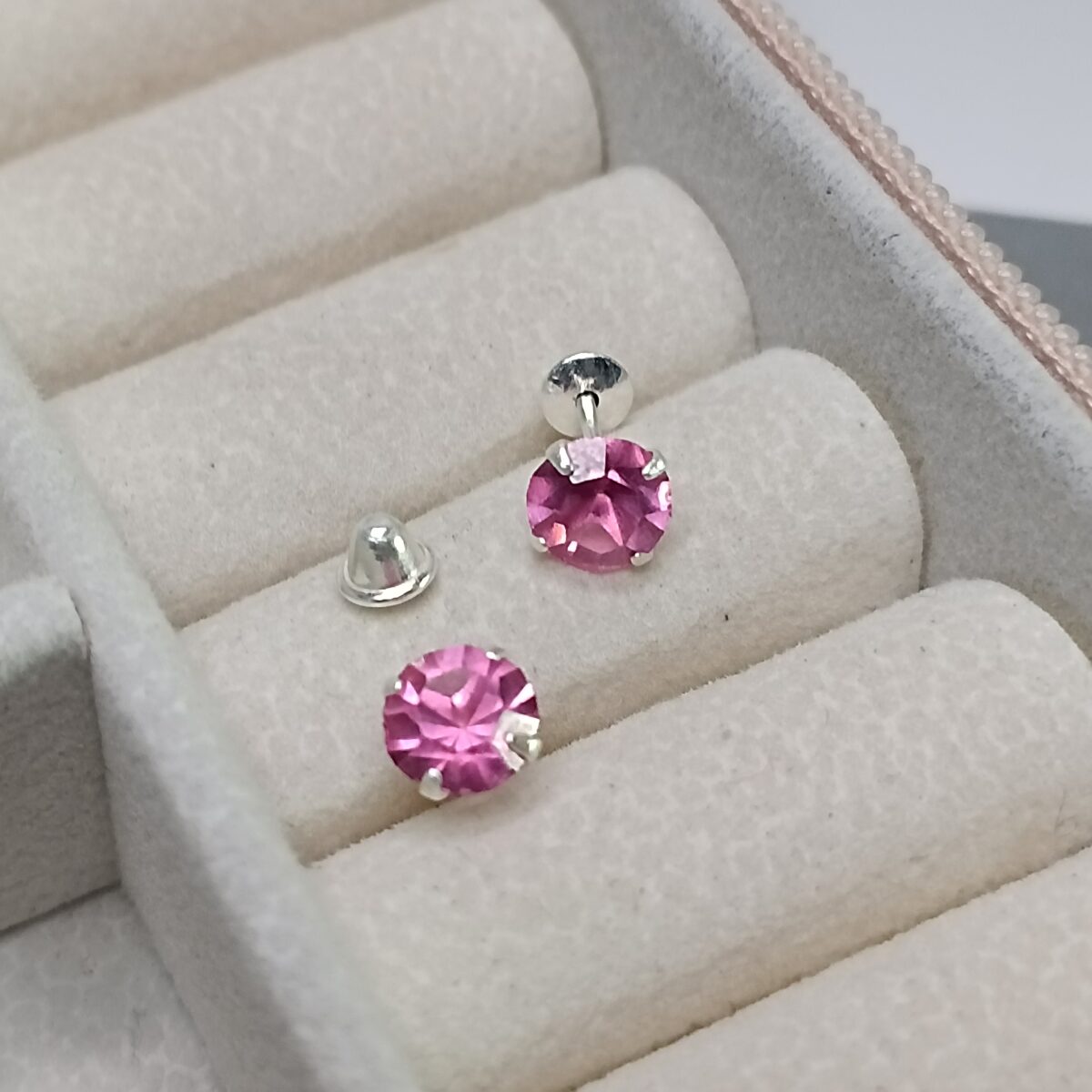Brinco De Prata Zirconia Rosa 6mm Taraxa Baby K50/51