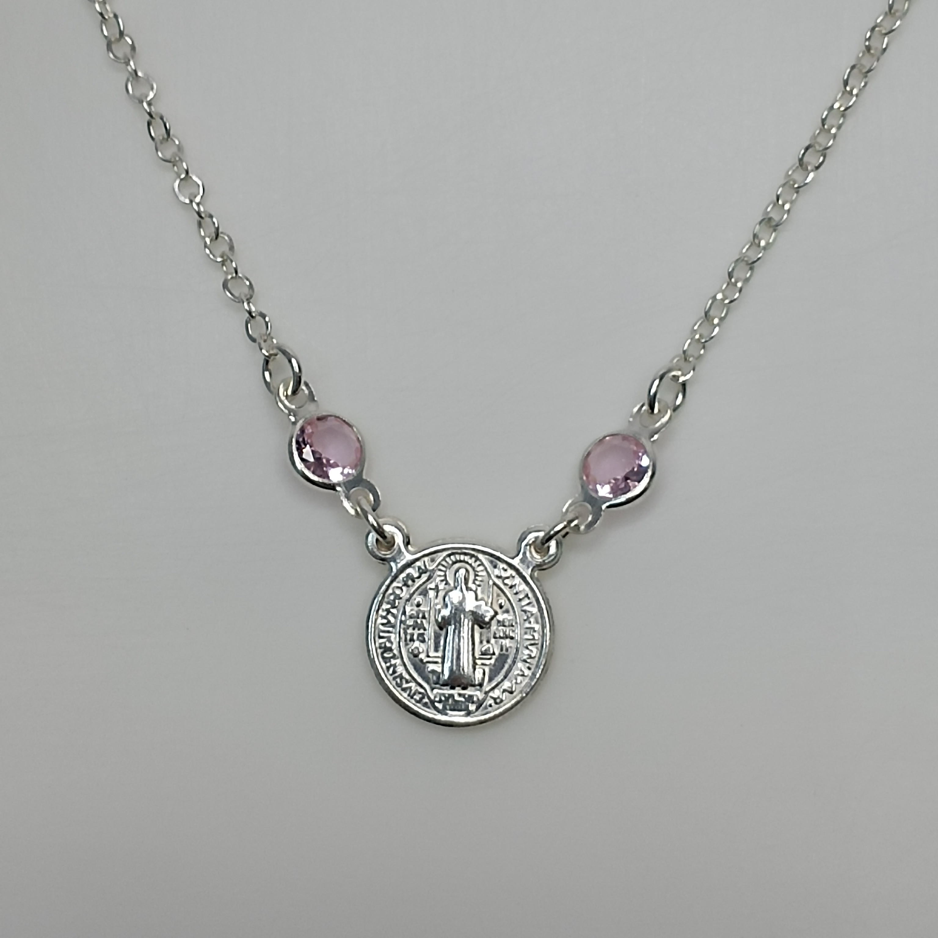 Gargantilha De Prata Choker Montagem 2 Zirconia Rosa Medalha São Bento Meio Cod:G2-12