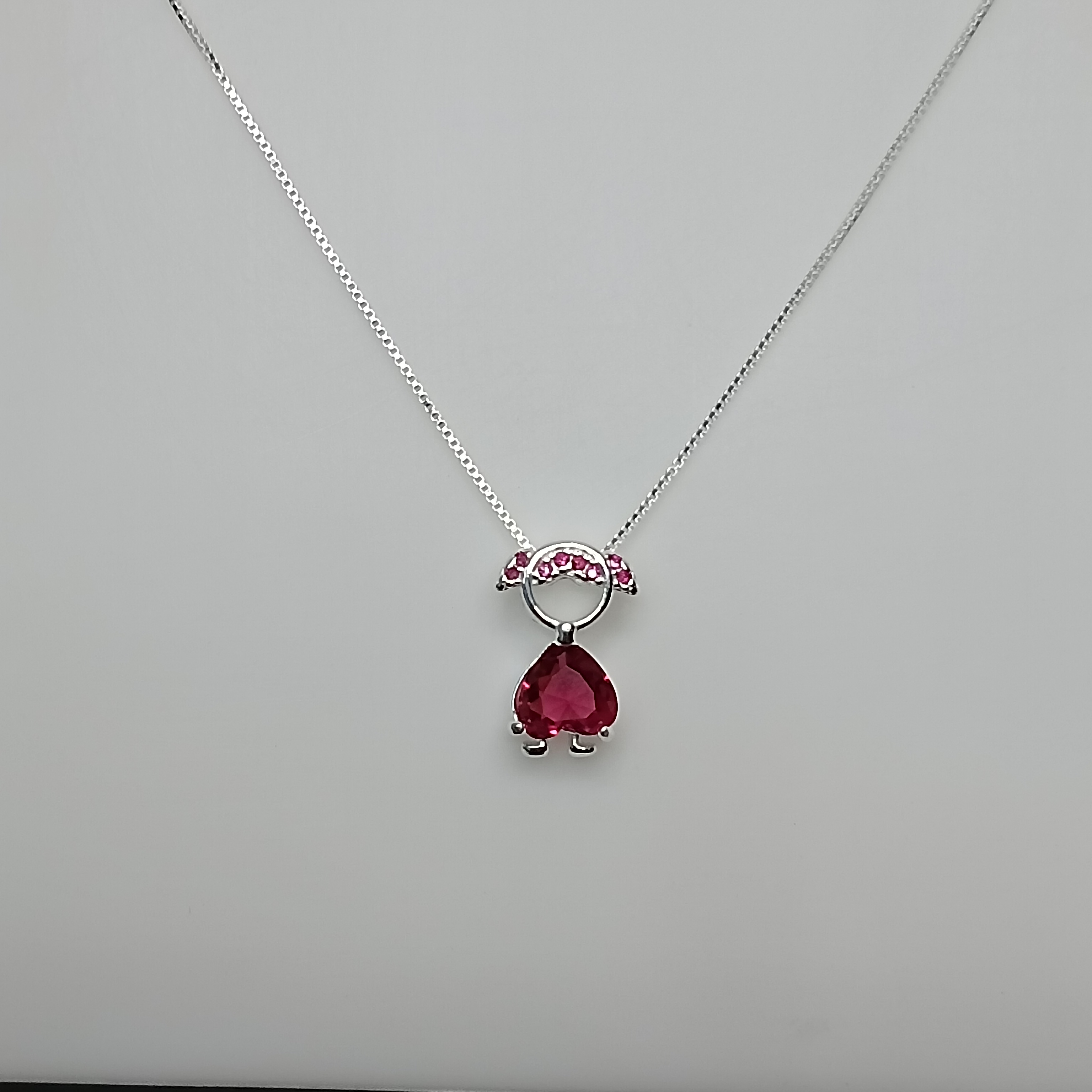 Gargantilha De Prata Menina Cravejada Zirconia Coração Rosa 45cm Cod:G3-16
