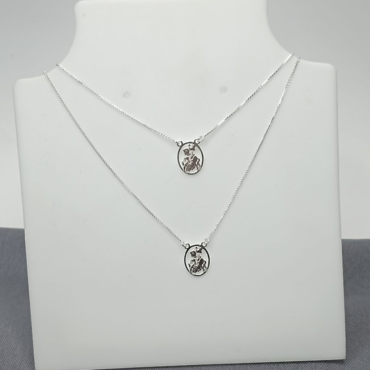 Escapulario De Prata São Jorge Oval V12 60cm K348/59